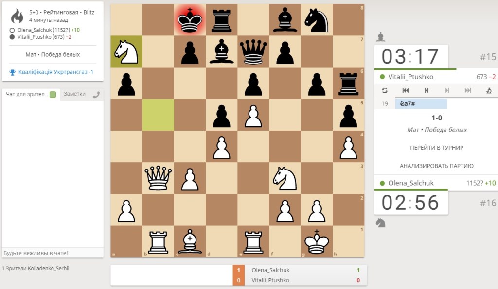 За формулою змагань з кожного відбіркового турніру 4 найкращі спортсмени проходили до фінальної частини. Тактику та стратегію учасники обирали різну, хтось намагався відразу вийти у четвірку в першому ж відбірковому раунді і відпочивати до фіналу, а хтось навпаки тримався серединки, більше грав, набирався турнірного досвіду, та проходив у четвірку в останньому відбірковому раунді. Тож до фіналу потрапило 12 найсильніших шахістів Товариства, де прикрасою чоловічих баталій мала стати наша Олена. Проте, попри чудову гру та блискучі мати, лише за додатковим коефіцієнтом, їй не вдалося попасти у четвірку в 3-му відбірковому раунді.