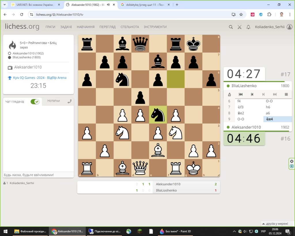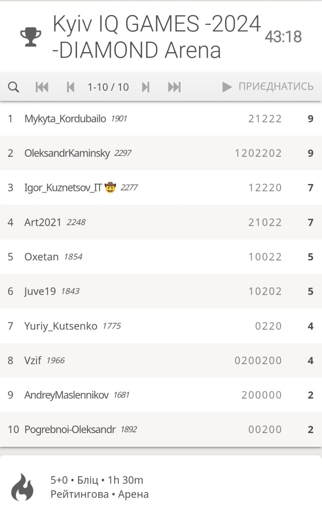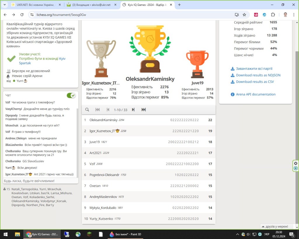 04-06 грудня 2024 року Департамент молоді та спорту м. Києва та Київська міська організація ФСТ “Спартак” вітали учасників відкритого онлайн чемпіонату м. Києва з шахів KYIV IQ GAMES 2024, який проходив в рамках проєкту Здоровий киянин. Цьогорічний турнір об’єднав 8 збірних команд столичних підприємств та організацій: